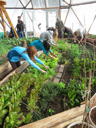 Last Friday, twenty-five 5th graders from Truckee Elementary came out to the Growing Dome and in the matter of one hour harvested, weighed, washed and packed 16lbs of greens and rooted vegetables. About 8lbs will be used to make a soup for a cafeteria meal. But the kids got a special surprise for the weekend when they learned they would each be taking home a bag of lettuce greens to share with their families.