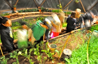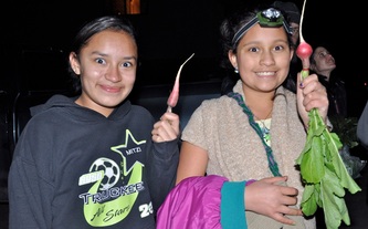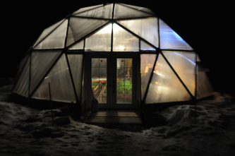 Cody is a member of the Squaw Valley Institute Kid’s Club. The club came out to the Growing Dome for an evening tour to learn about the dome and discover cool things about 4-season growing. Everyone got to help Cody harvest veggies that he later used in a seasonal meal prepared for his family. BIG thanks to Carolyn Hamilton who organizes this talented and motivated bunch of kids who are developing a better connection to their food in anticipation of Joel Salatin’s visit on Feb. 13th. Here’s Cody…*** One time my class went to the Growing Dome in Truckee. It was full of vegetables and frogs. I saw a water tank with fish and asked what if was for. Susie said that the fish poop fertilizes the plants in a system called aquaponics. The Dome has solar panels to power the water tank’s pump and fans to circulate air. When it gets hot in the Dome the wax on the cooling vents melts and opens the vents so cool air can come in. When the dome starts to cool down the wax hardens and closes the vents. That’s cool! At the Dome we harvested parsley, chard, carrots, one beat, radishes, and spinach leaves.