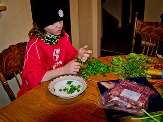 After the LONG process of getting all the food I finally got to make my meal. We made a salad with chard, beat leaves, carrots, and radishes. My favorite part of the salad was the beat leaves! We boiled the beat and sliced it up and put a little vinegar on it. It was really sweet! We added parsley, salt, pepper, and honey from beehives in Sparks, Nevada to the ground beef. Then we cooked it up and made cabbage wraps. It was so good we had it for lunch the next day.*